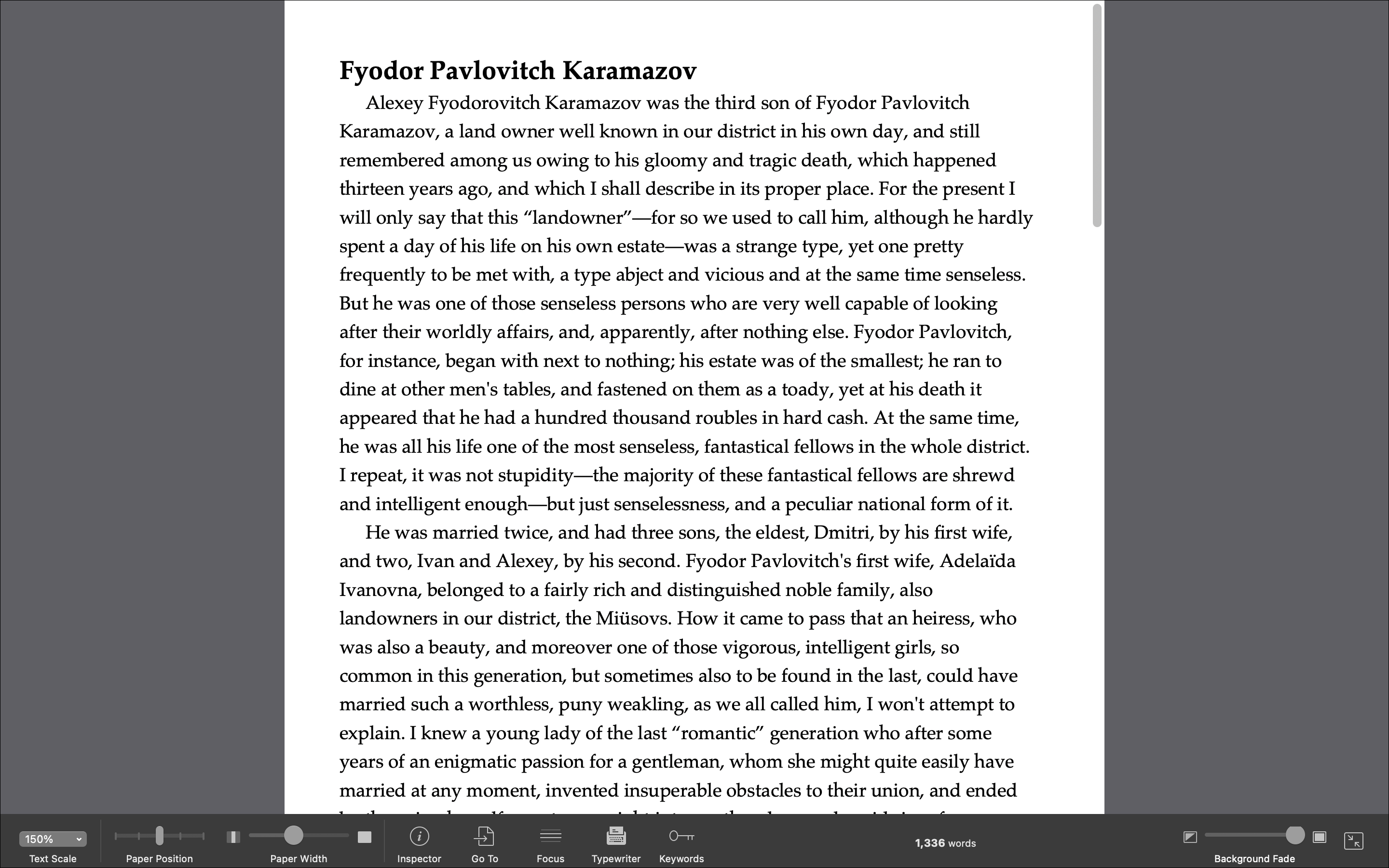 - Paper Width: This changes the width of the virtual page, and also the amount of text on each line. Note that if you press the Option/Alt key and move this slider, it affects the page height. And if you change the height, and press Option/Alt while moving the Paper Position slider, that affects the position of the page on screen, if it’s not the full height.