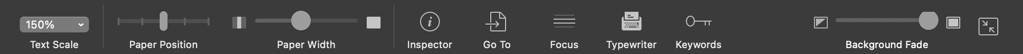 - Background Fade: Together with the Paper Position setting, you may want the background visible to view notes or research while still using the minimal display of Composition Mode. Use this slider to adjust how opaque the background is. If not, move the slider all the way to the right to mask everything other than your page.