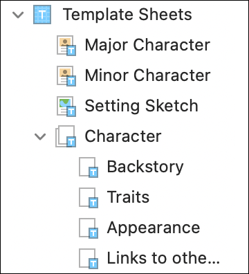 So if you want to have character sketches with multiple subdocuments, you can set up a file group like this and place it in your Template Sheets folder: